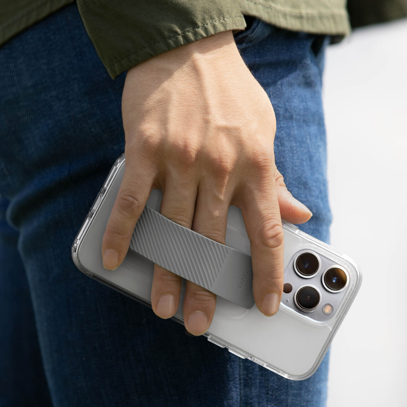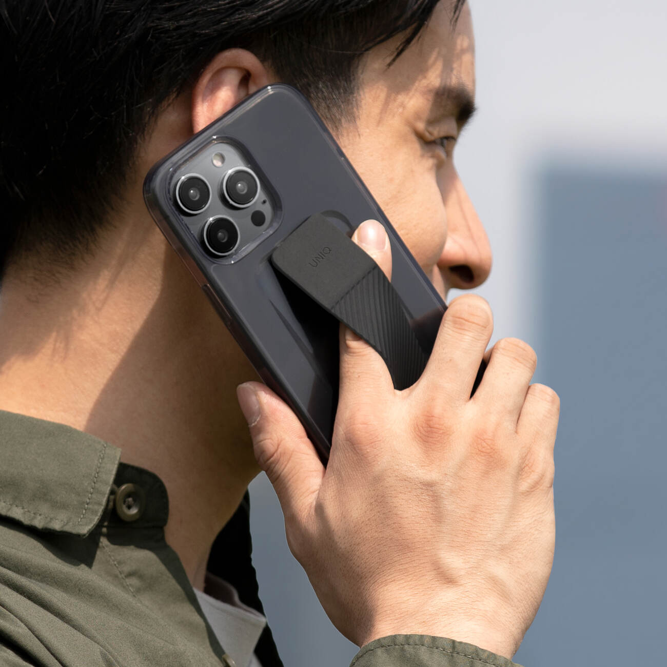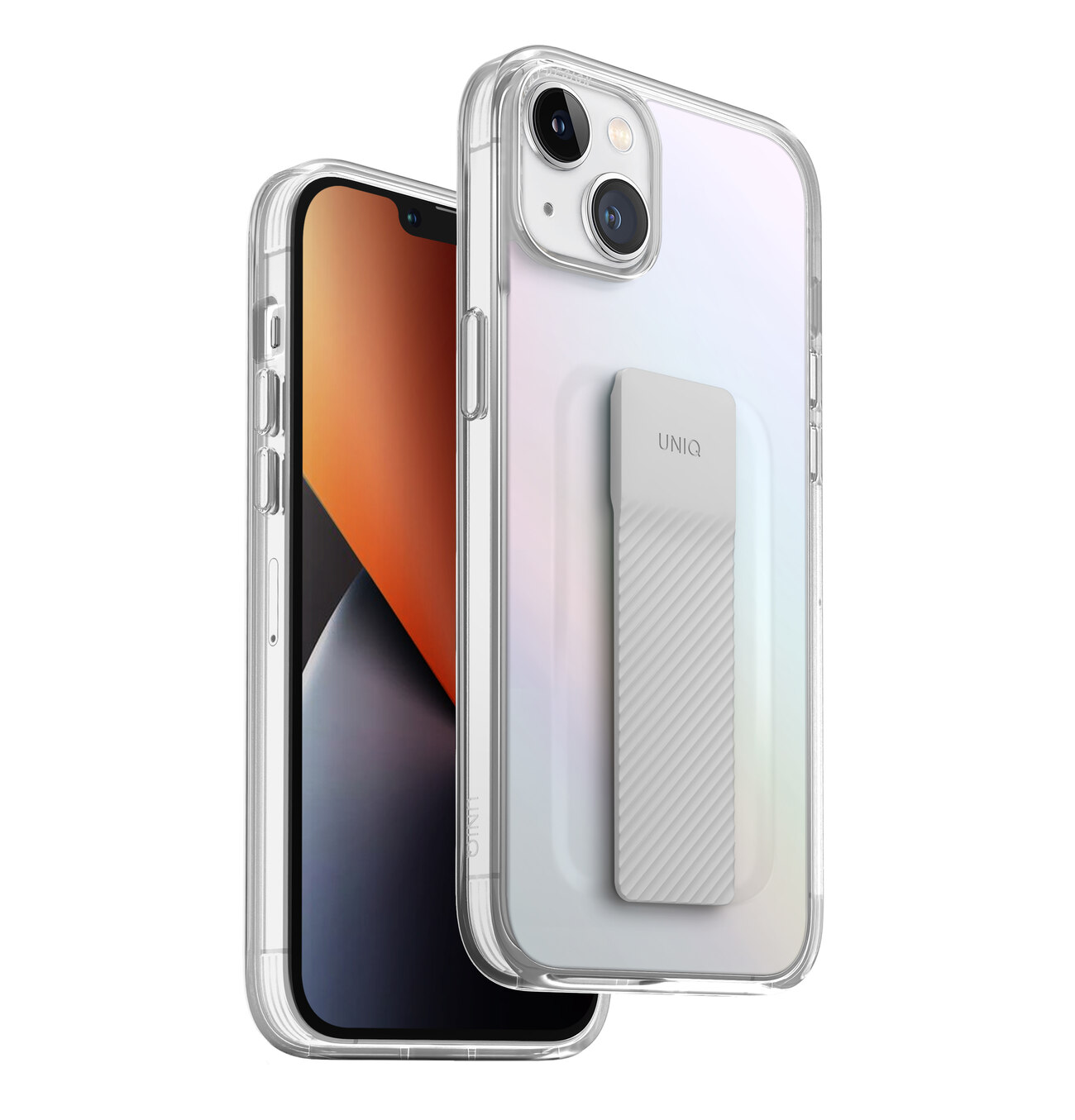 UNIQ Heldro Mount Case for iPhone 14 Plus / Built in Strap & Magnet / Iridescent Clear in Qatar