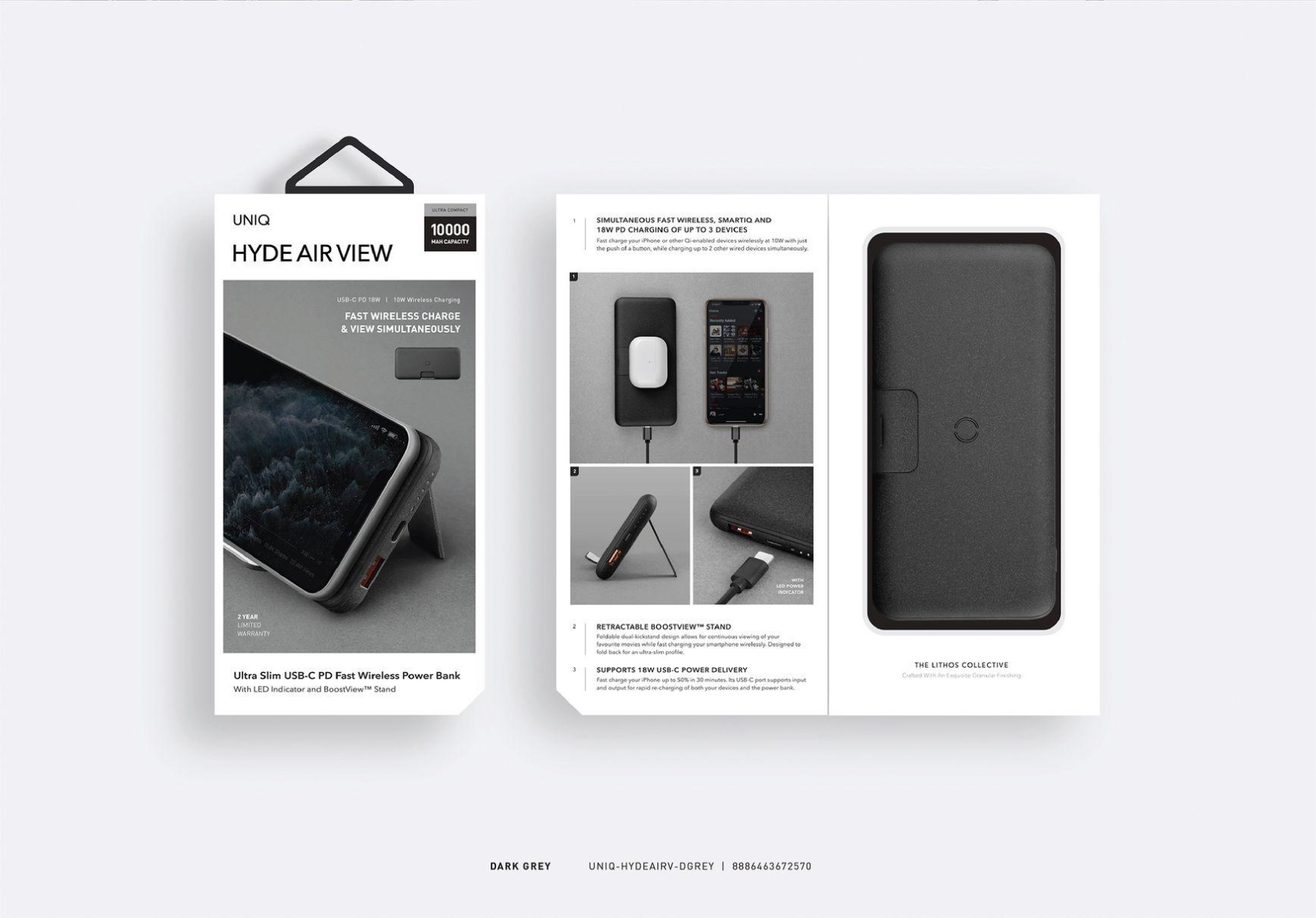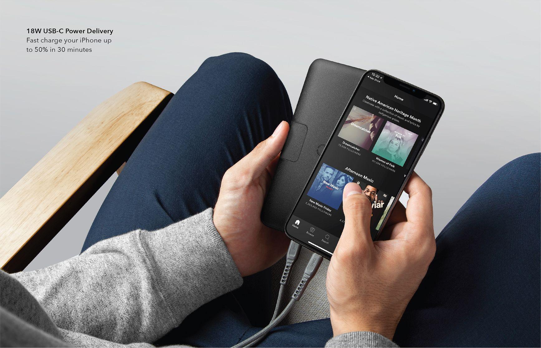 باور بانك يونيك 20,000 mAh مع ستاند مدمج يدعم الشحن اللاسلكي والسريع