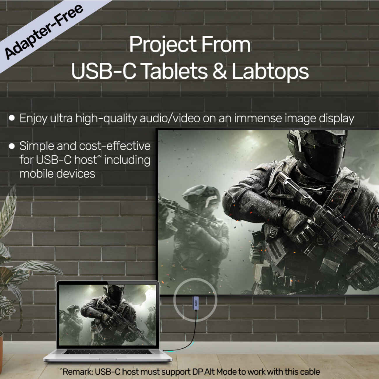 USB-C connector allows you to connect with a computer or tablet equipped with Thunderbolt 3 or USB-C port supporting DisplayPort Alt Mode.