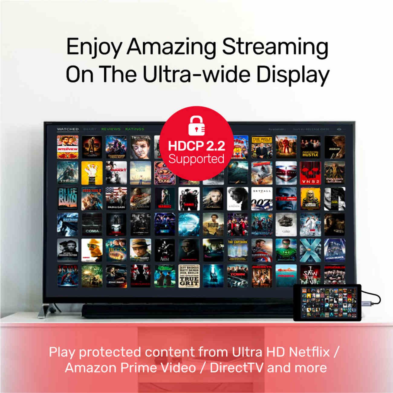 HDCP2.2 support for streaming services like Netflix and Amazon Prime Video in 4K.