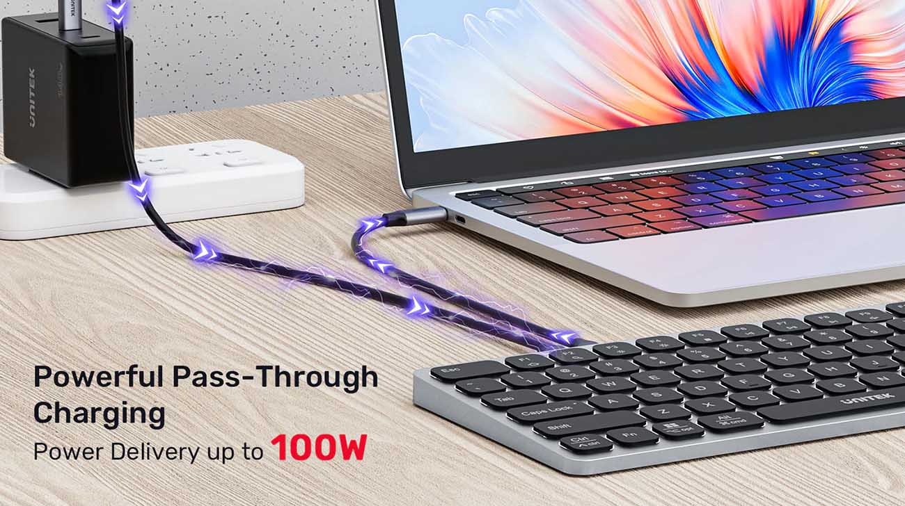 Supports up to 100W power delivery — ideal for charging laptops or any USB-C device.