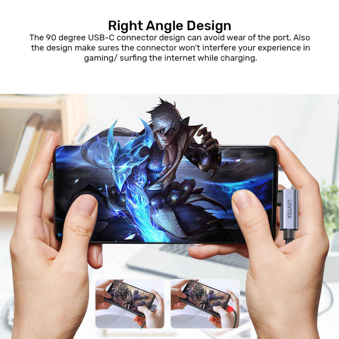 Unitek Type-C to Type-C Cable / Second Input With 90-Degree Angle / 100W Power / 1 Meter in Qatar