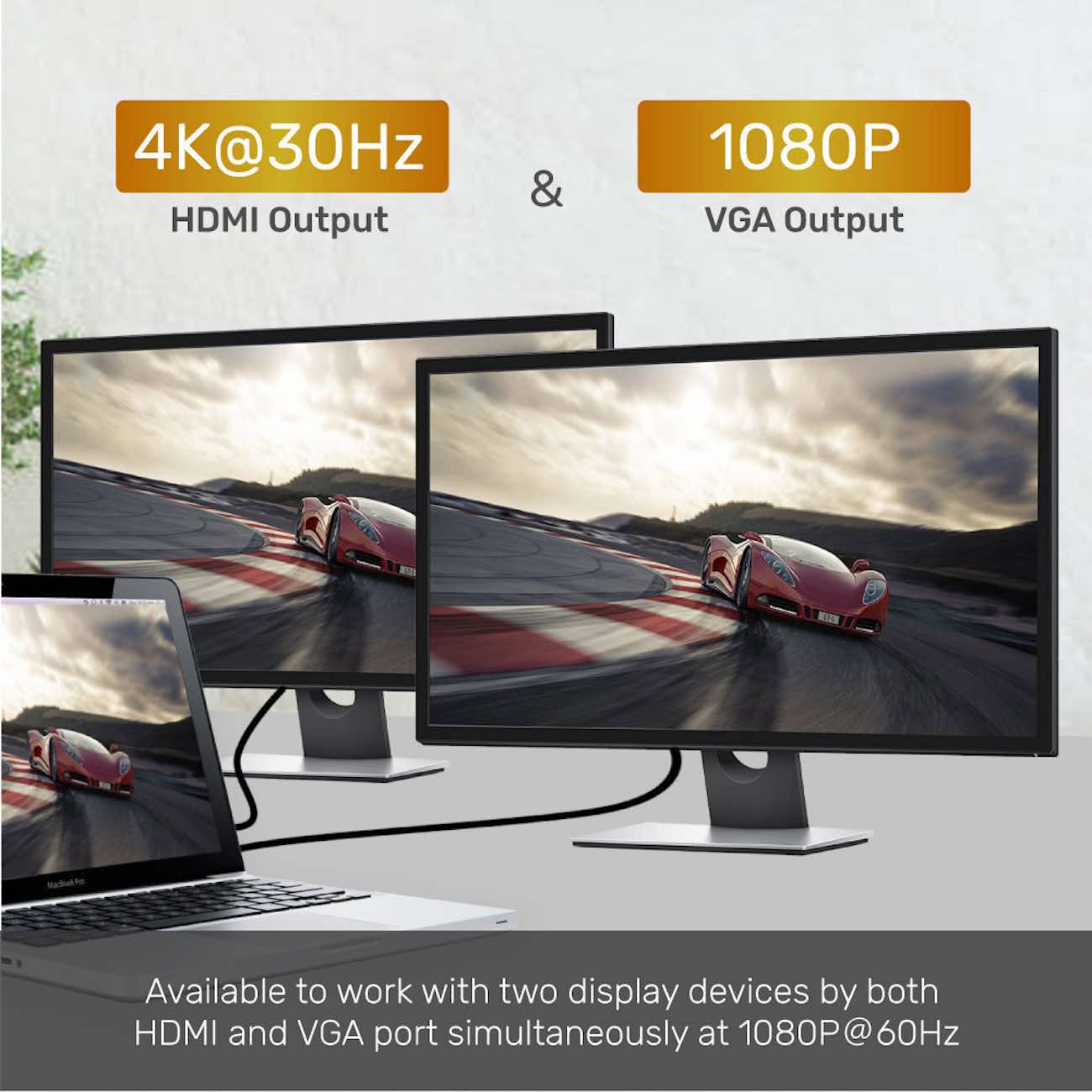 When using the HDMI and VGA ports simultaneously .. the maximum resolution is 1080P with a 60Hz refresh rate.