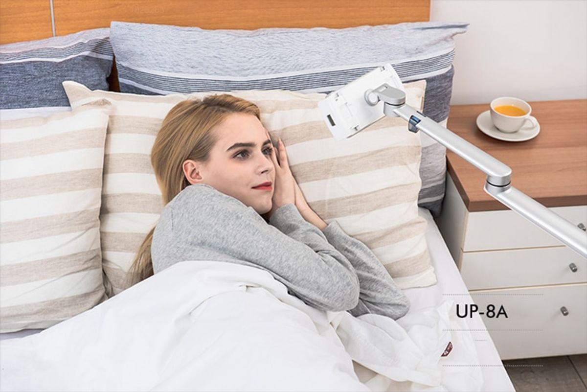 Stand made of strong materials such as aluminum which make it lives long even after a long use. The arm of the stand is made of silicone that protects the phone from scratches.