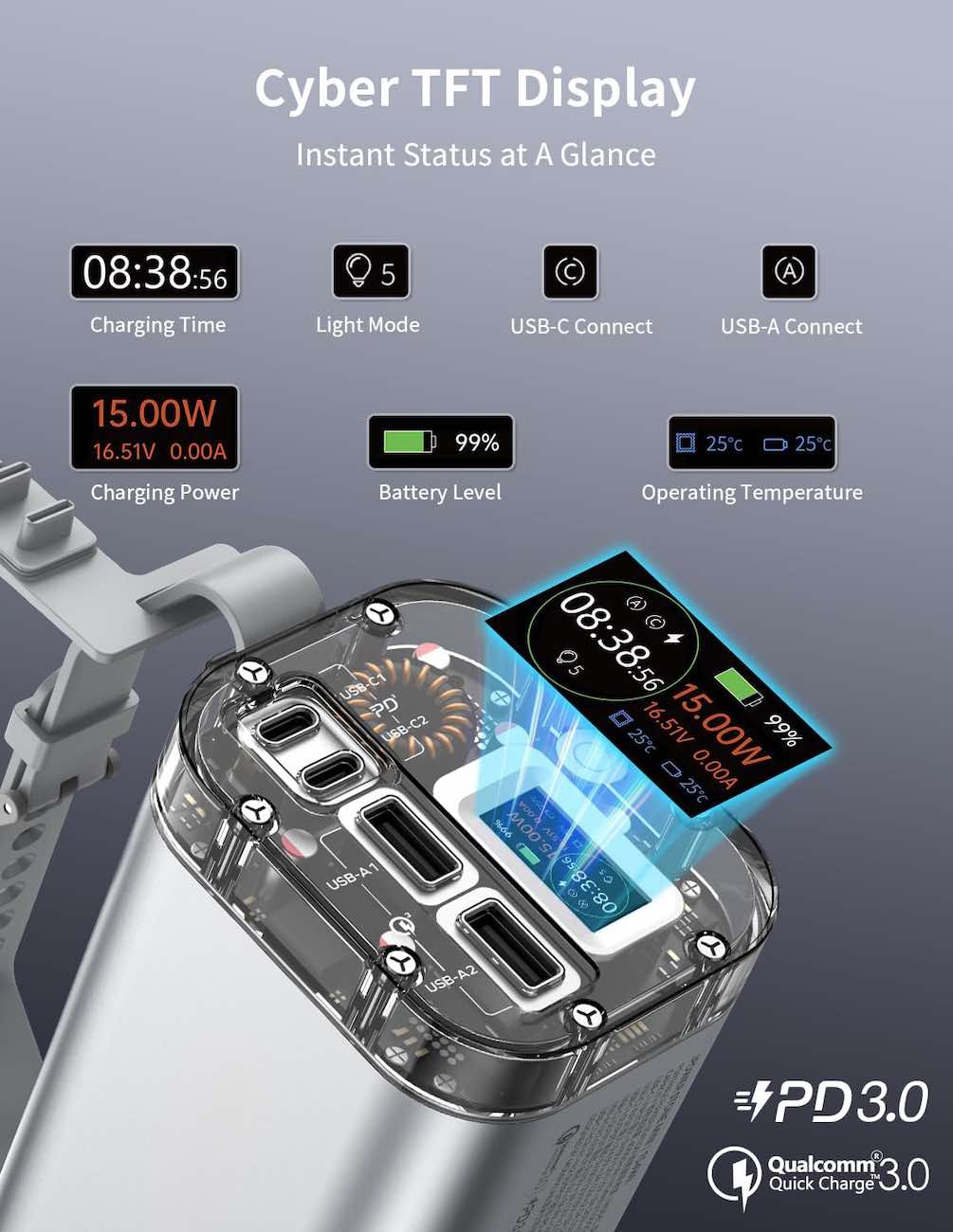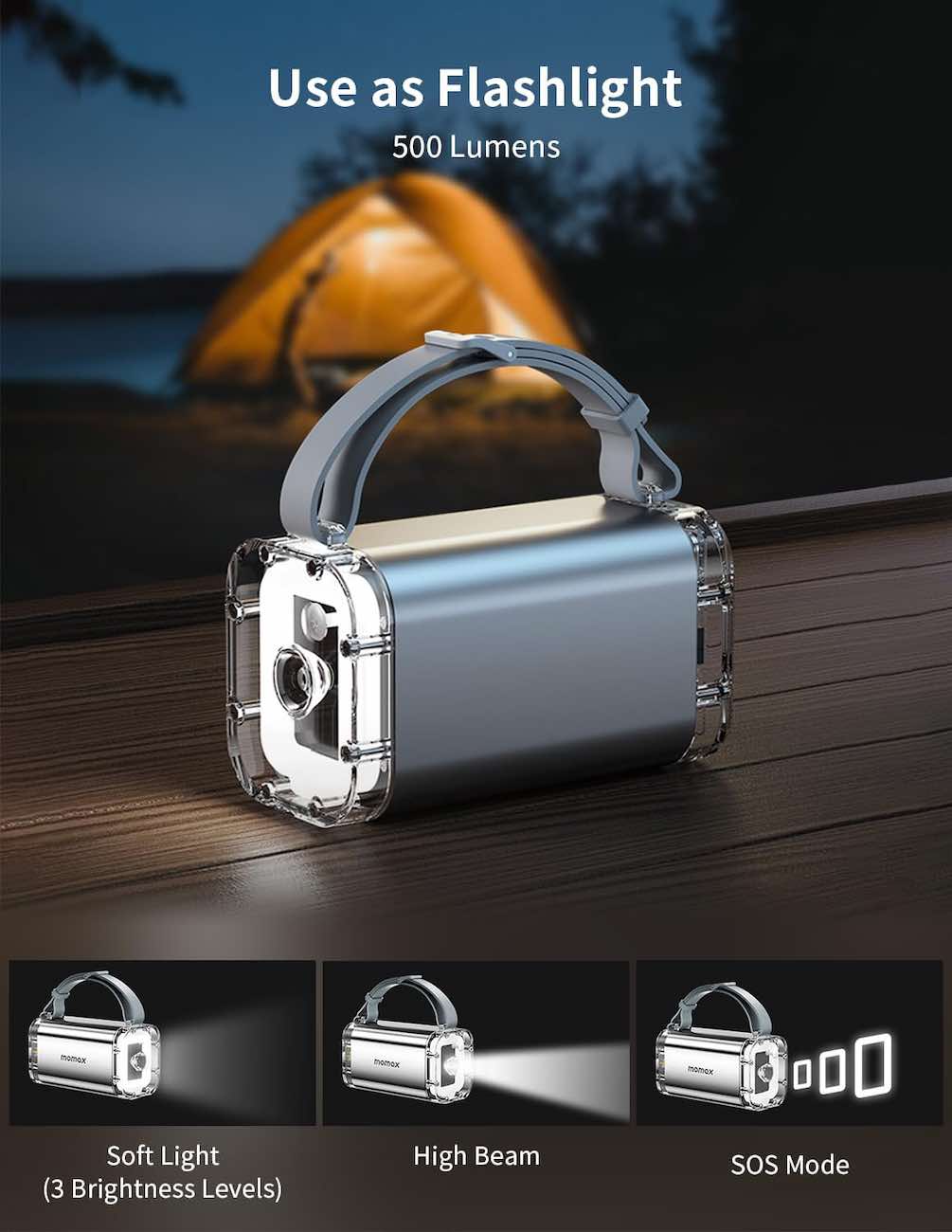 Includes a built-in LED flashlight with a brightness of 500 lumens.