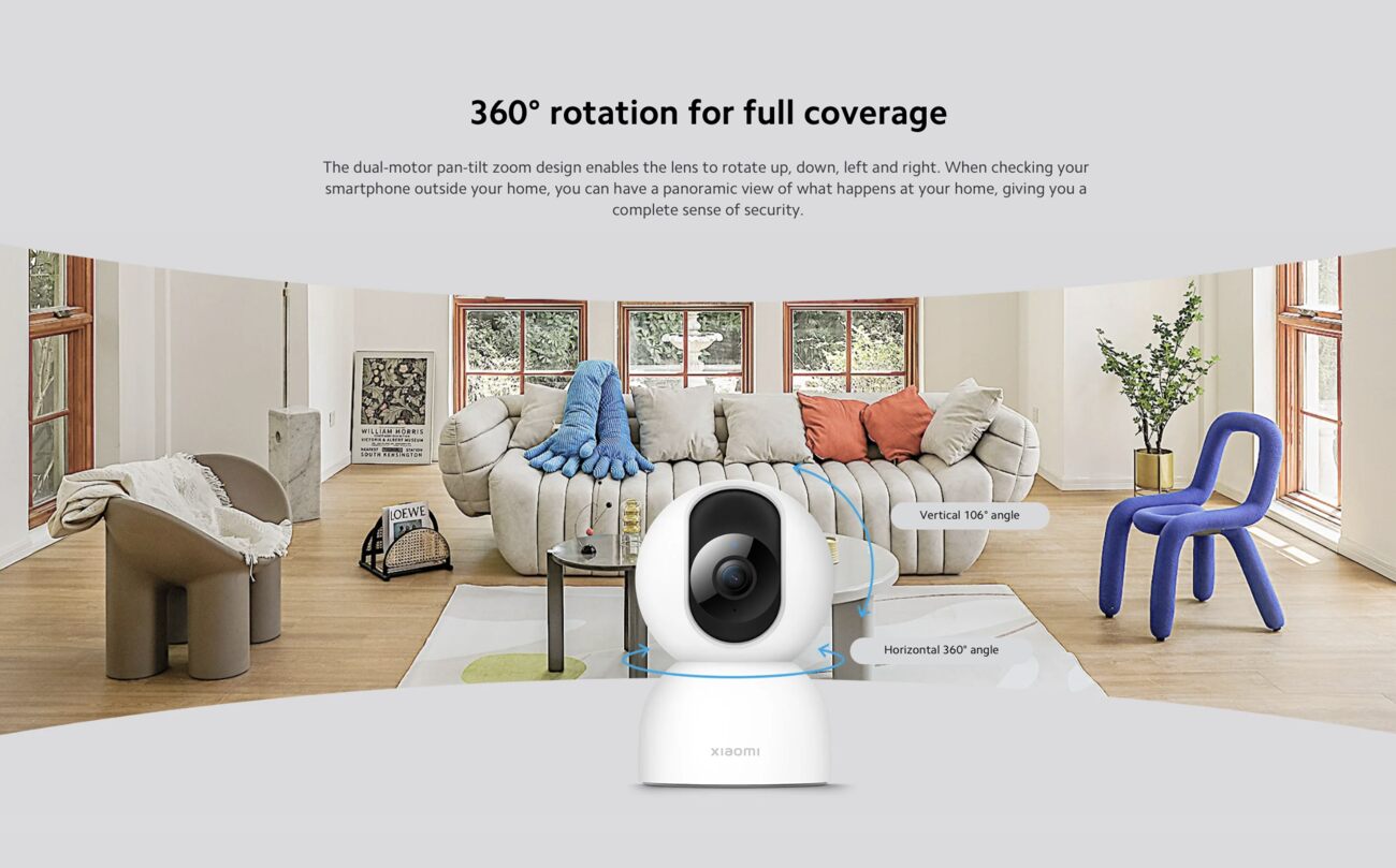 Dual-motor pan-tilt zoom design for 360° vision and panoramic view of home security