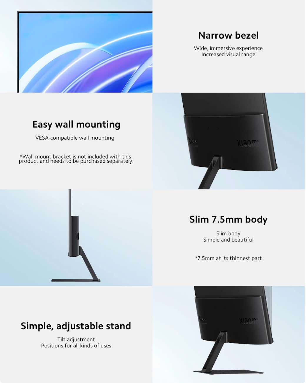 A new monitor from Xiaomi with excellent size, beautiful colors, and elegant design.