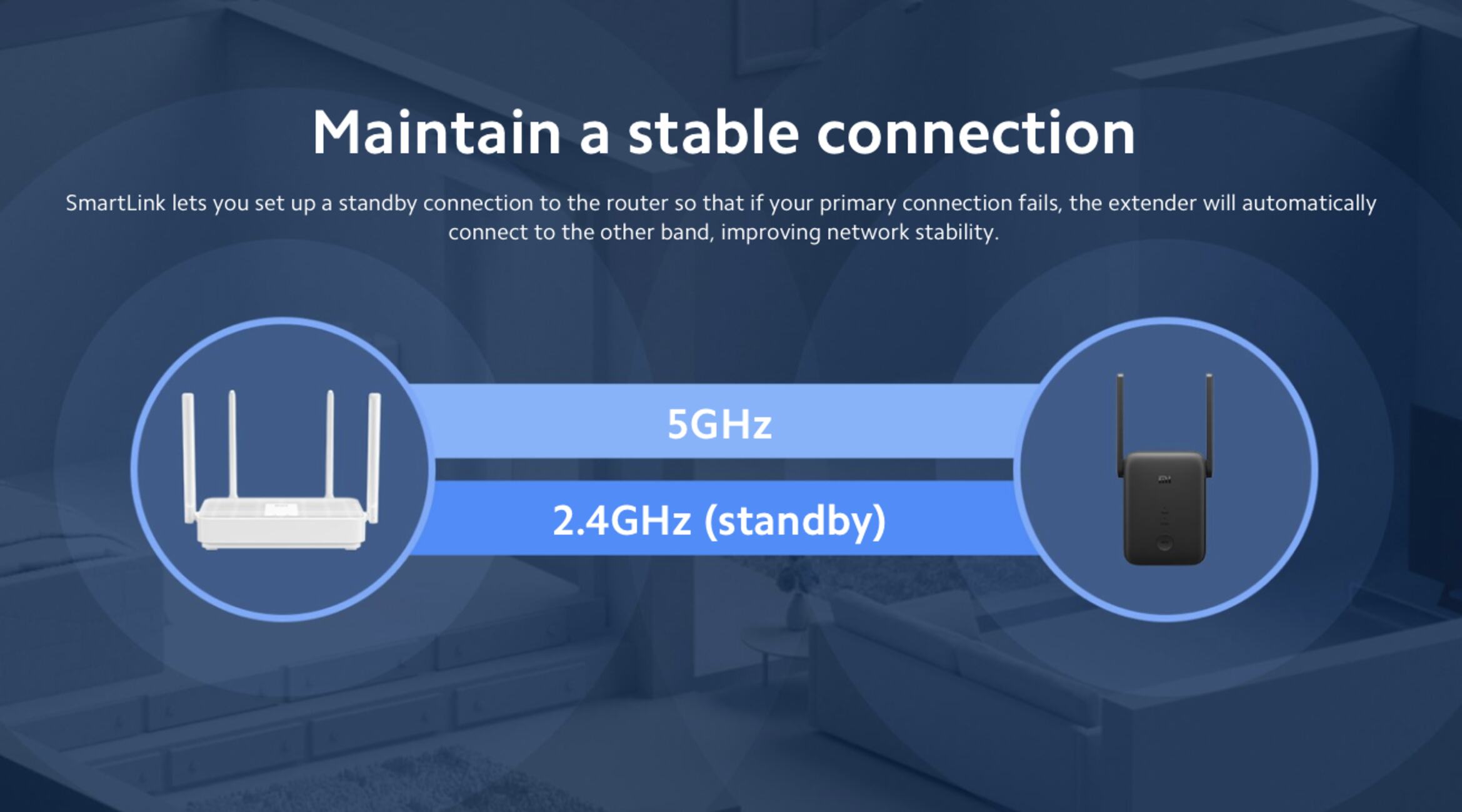 SmartLink ensures stable connection by setting up a standby connection to the router and automatically connecting to the other band if the primary connection fails
