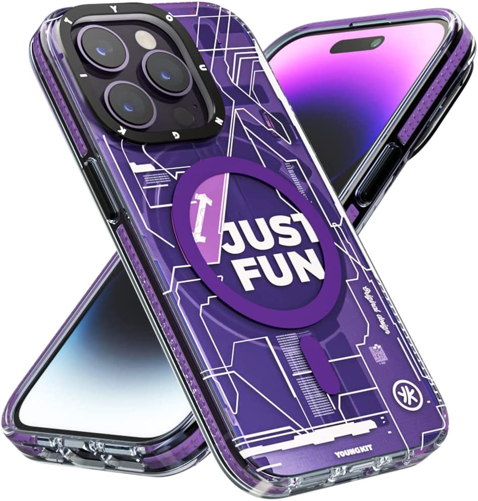 Youngkit Case for iPhone 14 Pro / Futuristic Circuit / Anti Impact / MagSafe / Purple in Qatar