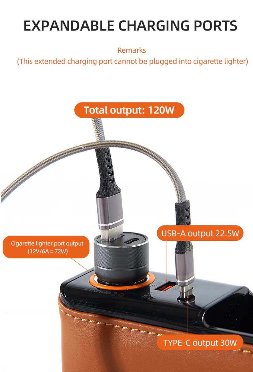 Also features a cigarette lighter socket.
